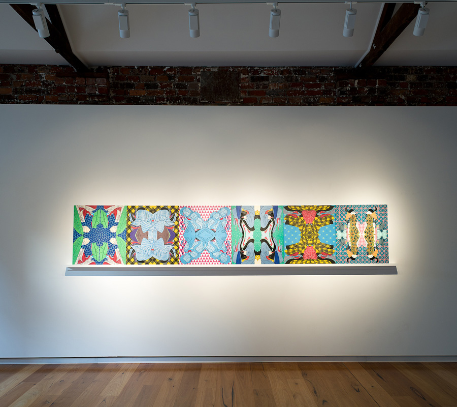 In her new series of paintings, Looking Full, Hughes continues this exploration finding, inspiration in traditional Japanese woodblock prints that depict demur female portraits. Here, Hughes reconstructs these portraits to create imagery that straddles figurative and abstract patterning. This process, together with her use of titles, such as 'Looking Itchy', 'Looking Suitable', 'Looking as if she wants to Change', uncovers the latent characteristics of these sitters. In turn they invite a different kind of 'look'.