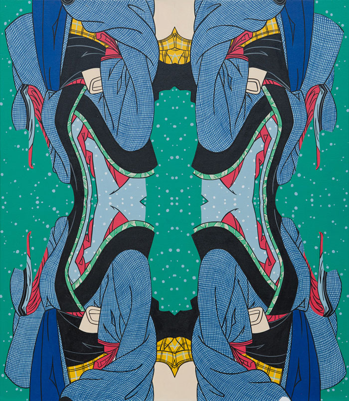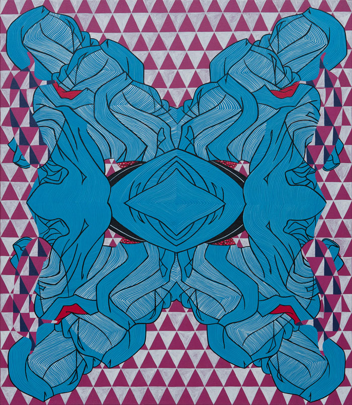 Natalya Hughes deconstructs, reconfigures and rewrites figurative images to form partially abstracted and highly patterned psychological worlds. Working broadly across painting, print, animation and installation, Hughes conflates the boundaries between beauty and the grotesque, realism and abstraction.