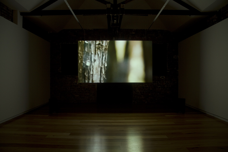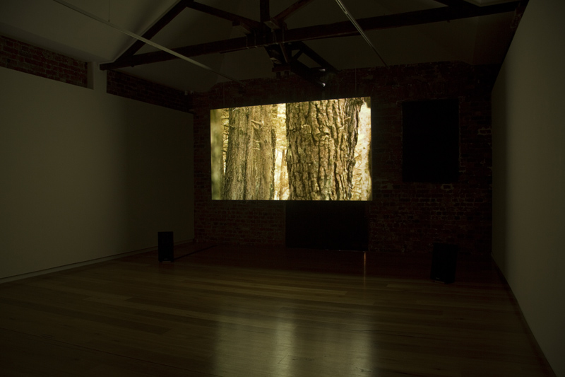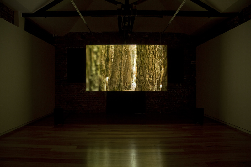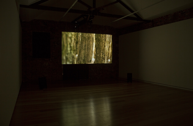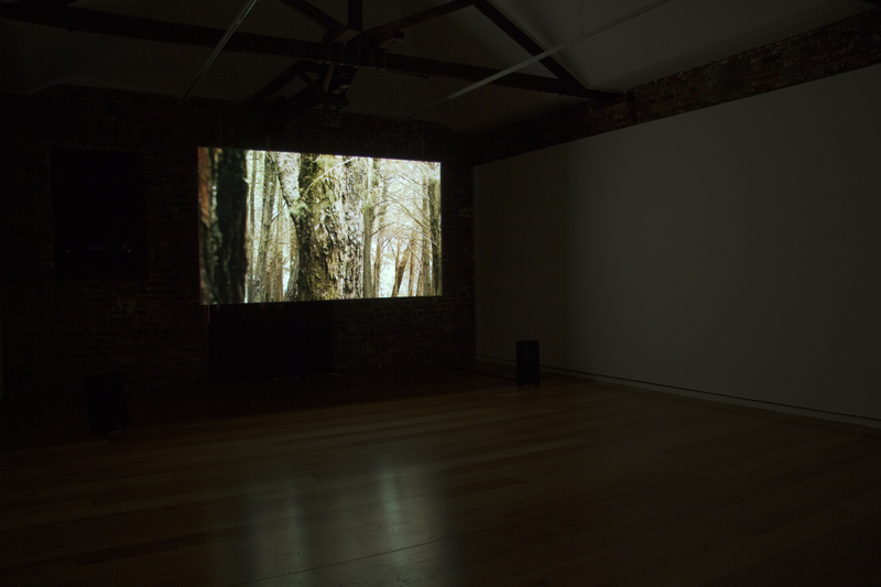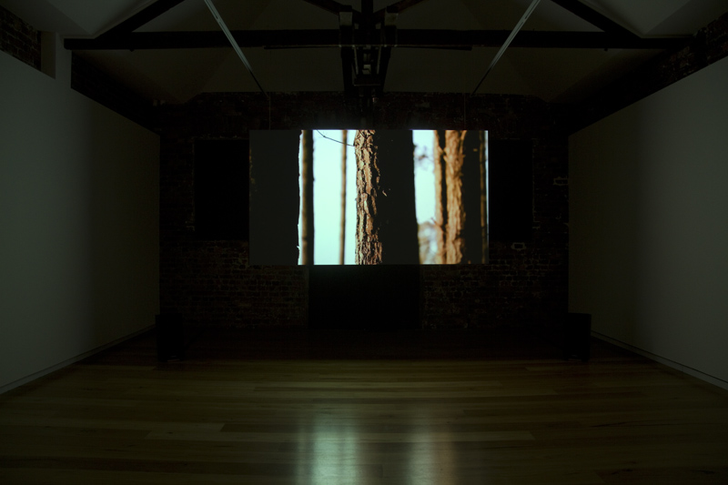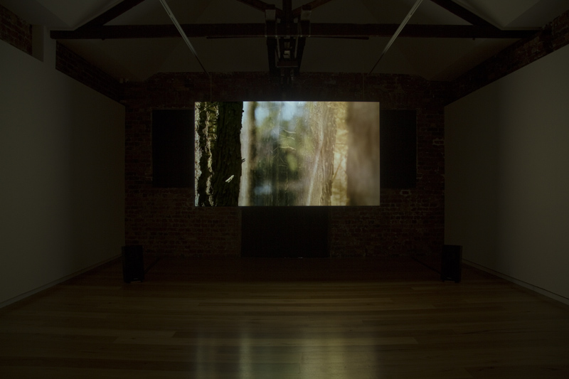 Scott Morrison intertwines video installation and intricate sound compositions to create new ways of viewing both natural and synthetic environments. Morrison’s new work, small choir, is a single channel video that moves into an increasingly complex yet seemingly familiar world of natural elements. This rhythmic and undulating work combines his interest in the aesthetics of rural landscape, with his ability to bend an audience’s perception of spatial density and time. In small choir, light streams through surrounding woodland, its hazy spectrum of colour coaxing the viewer to squint their eyes and attempt to focus on the landscape in the distance. Here, Morrison is encouraging us to locate the familiar and experience it through the act of looking, and looking again.